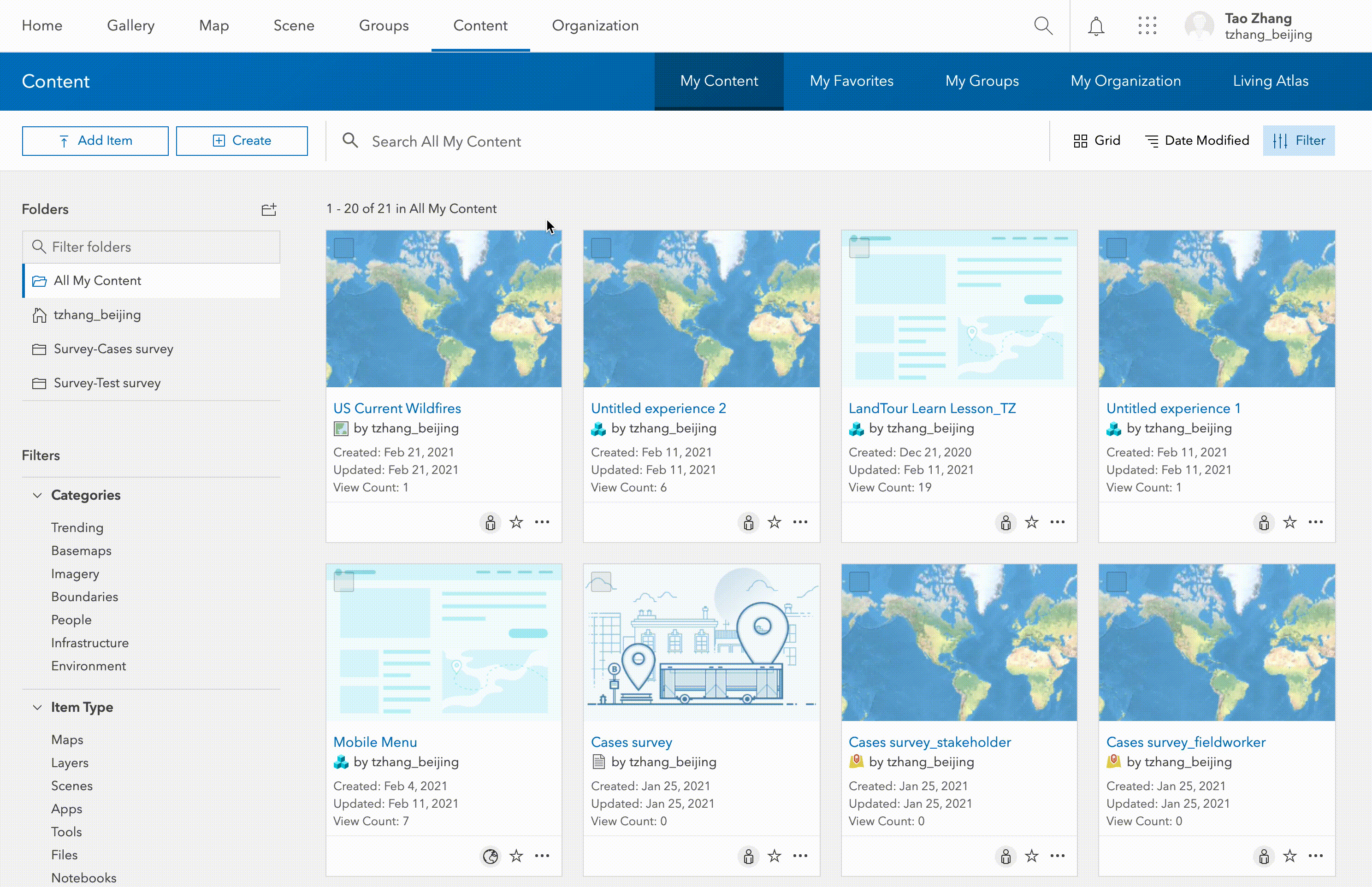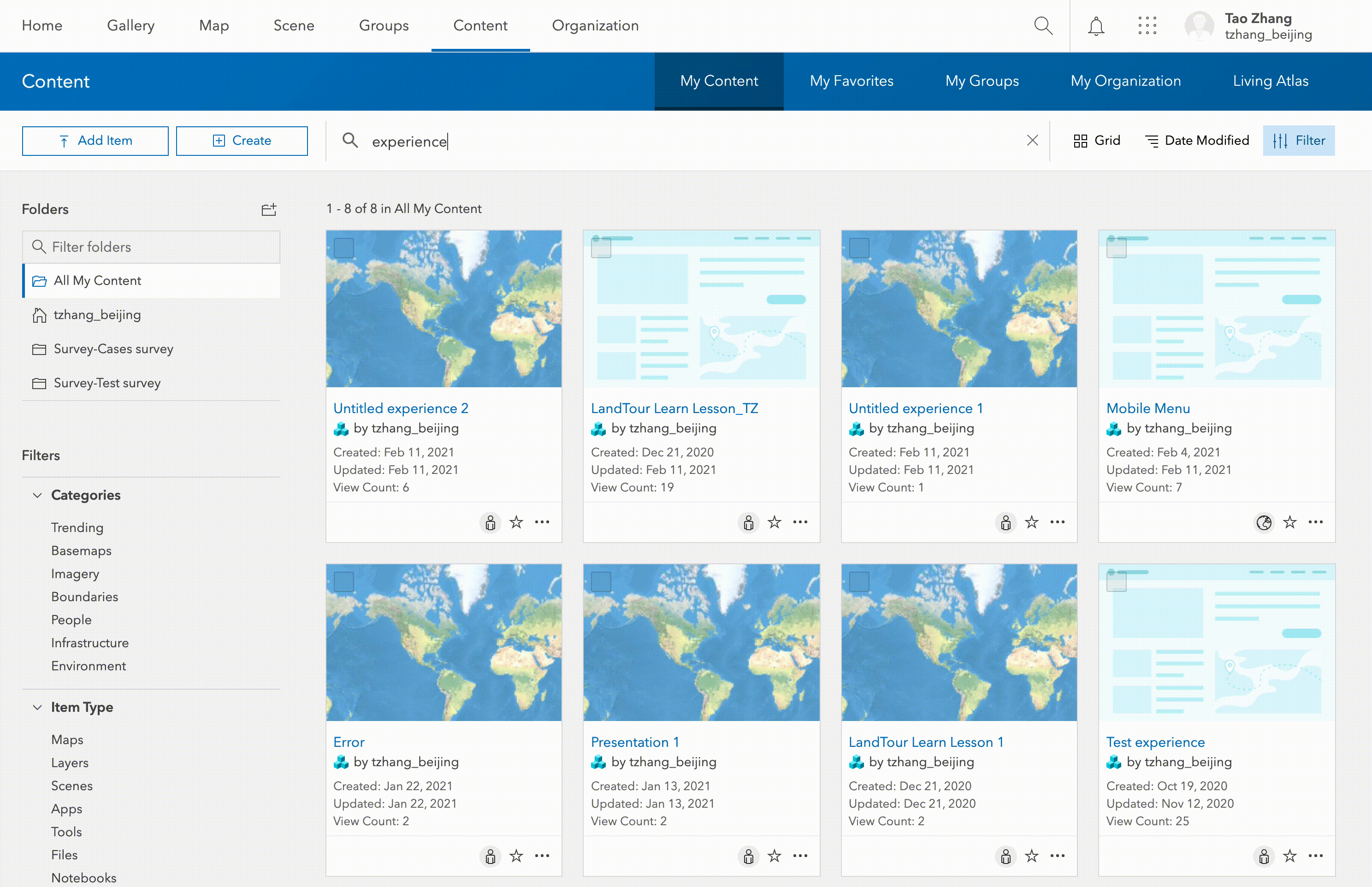 I designed the user experience of managing content on ArcGIS Online, with new patterns of search, filters, and views.