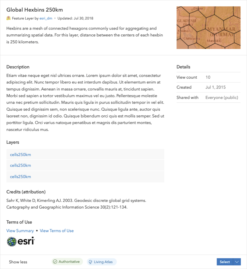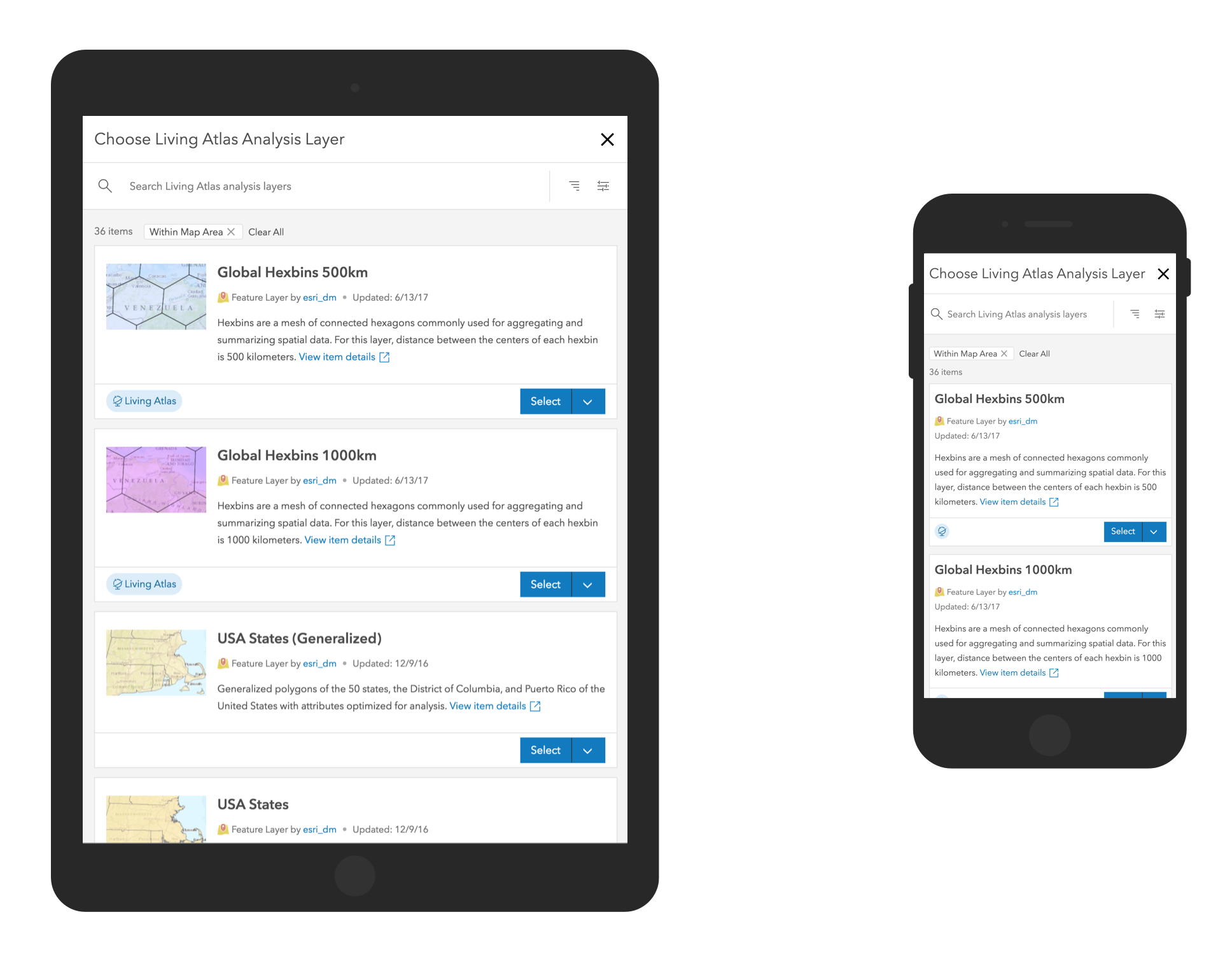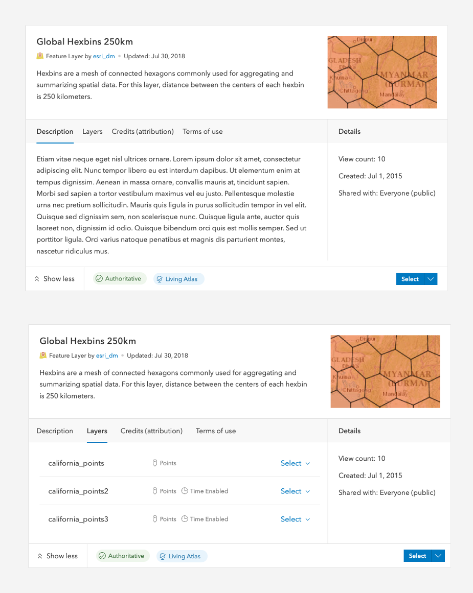 Many patterns and relationships are not always obvious by looking at a map. ArcGIS Online provides powerful analysis tools that quantify patterns and relationships and display results in the map. During the analysis workflow, users often need to add additional, unfamiliar layers to the map. Before the new design, users interacted with a legacy dialog that did not have filters and lacked a lot of important information of the layers.